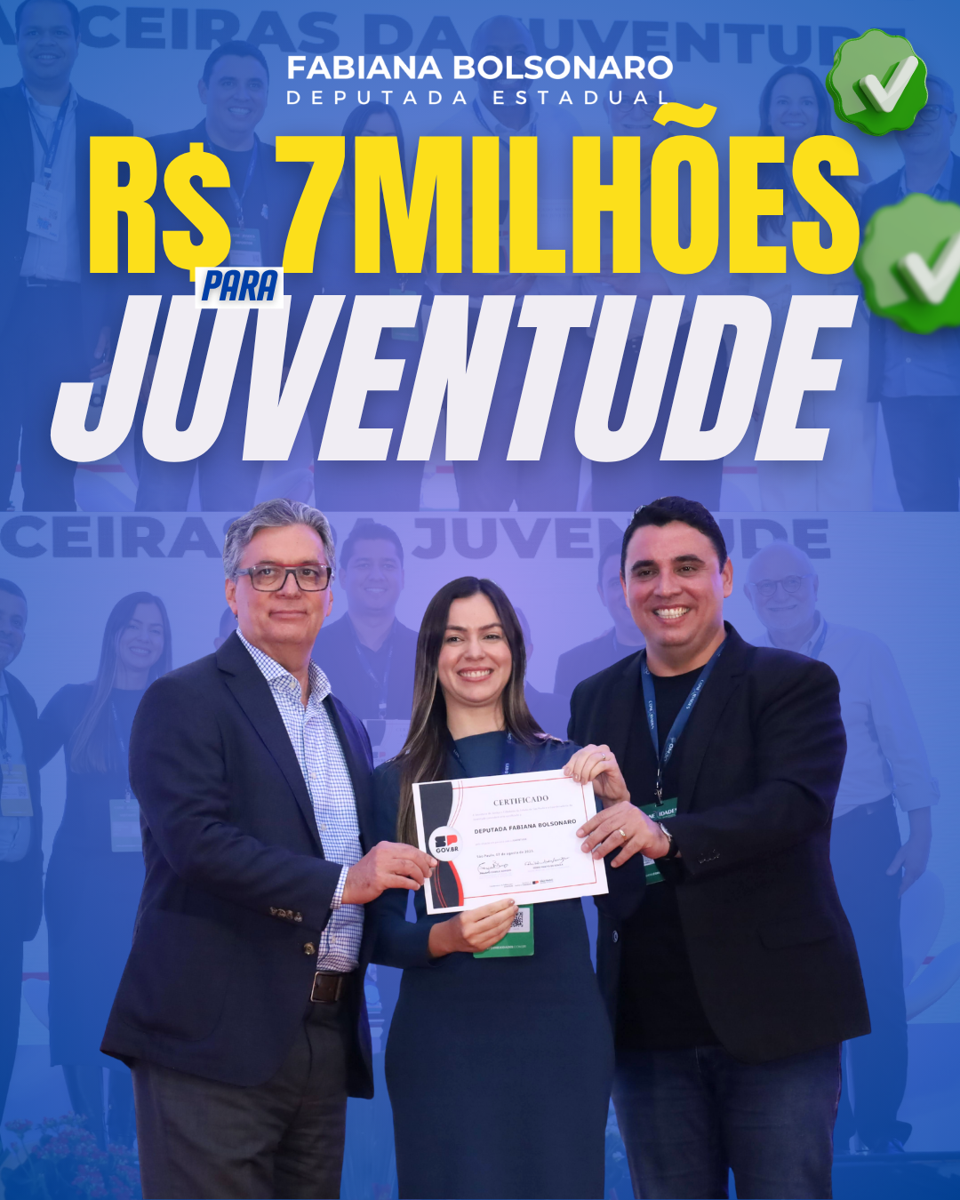 Fabiana Bolsonaro tem se destacado pela sua forte atuação em defesa dos jovens paulistas. Somente em seu mandato, já destinou mais de R$ 7 milhões em emendas parlamentares voltadas à juventude, reforçando seu compromisso com inclusão, oportunidades e políticas públicas que transformam vidas.